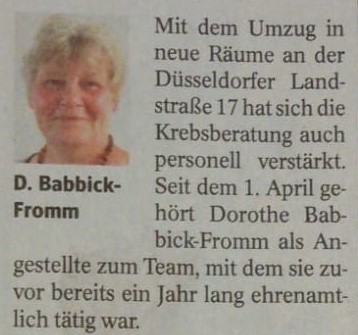 v.l.n.r. Dr. M. Prumbaum, Psychoonkologe/Berater, S. Fromm Diplom Sozialarbeiter/1. Vorsitzender des Vereins, H. Keßler, Referentin/Beraterin, I. Honnacker, Geschäftsstelle des Vereins, Dr. M. Schrader, Geschäftsführerin Krebsgesellschaft NRW